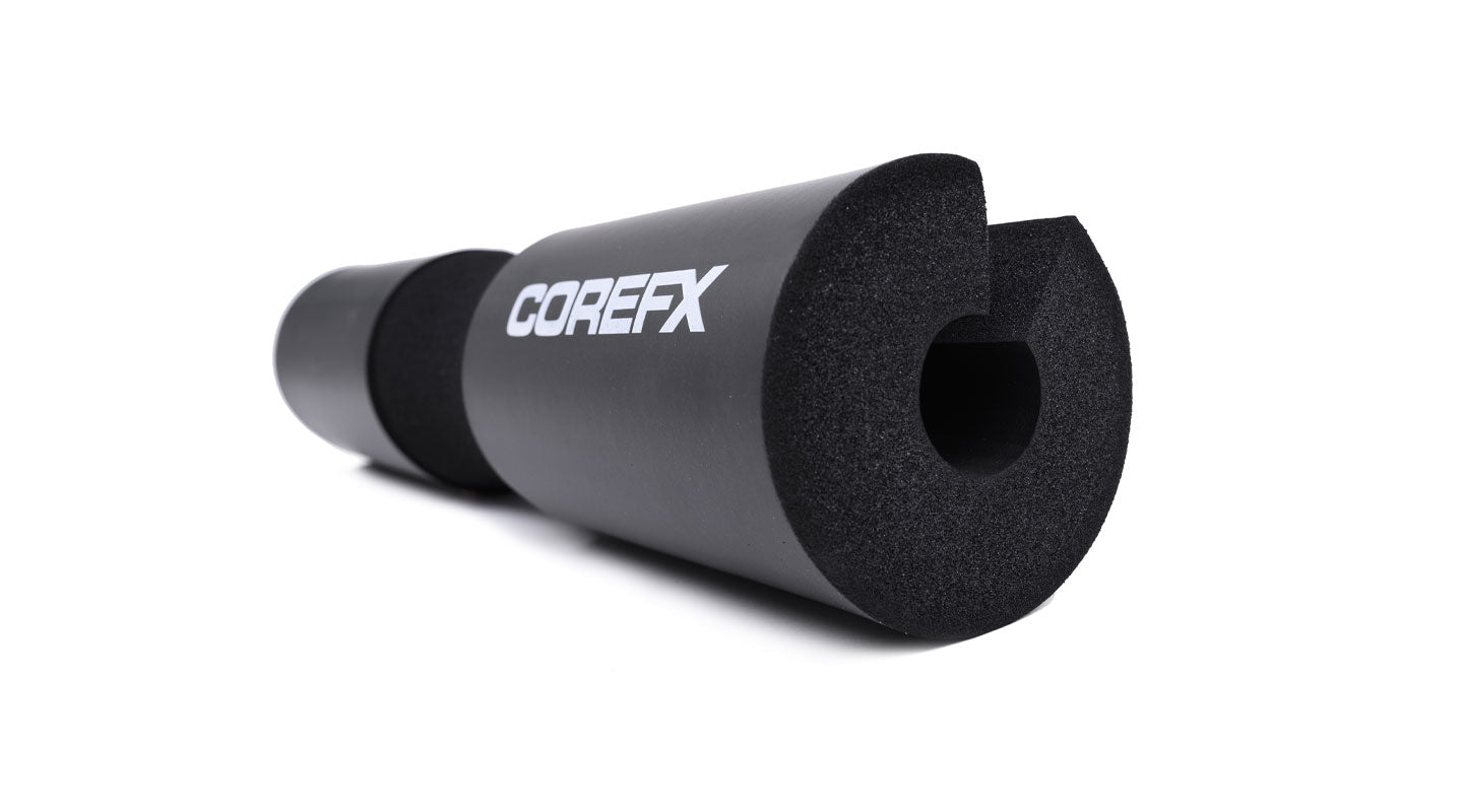 The COREFX Barbell Pad features an anti-slip foam cushioning to help reduce the risk of injury and relieve pressure during barbell squats and hip thrusts.