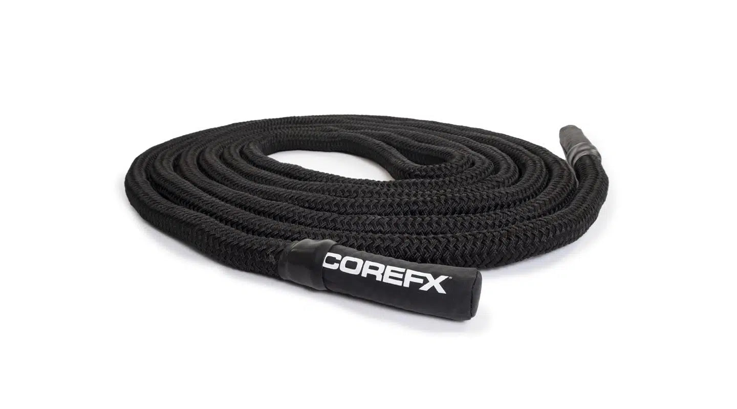 The COREFX Braided Battle Rope has been tested against other battle ropes and has consistently dominated the competition. Specifically, the Braided Battle Rope is very different than our other Battle Ropes, as it’s made from durable braided polyester over a multifilament polypropylene core to give it an extremely durable and long lasting lifespan.