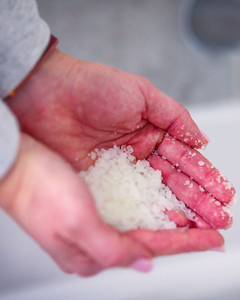 Magnesium chloride is a modern alternative to epsom salts. By neutralizing the chlorine in the water, it will help keep your skin soft, eases dryness and irritation.