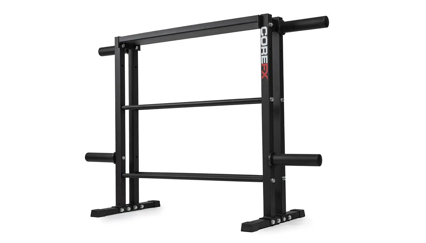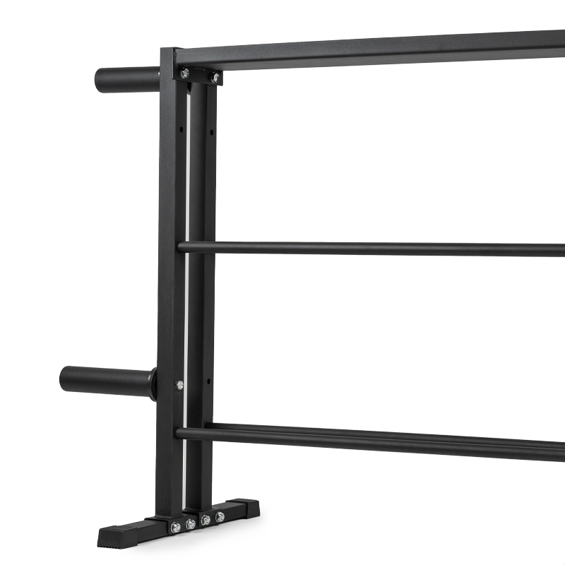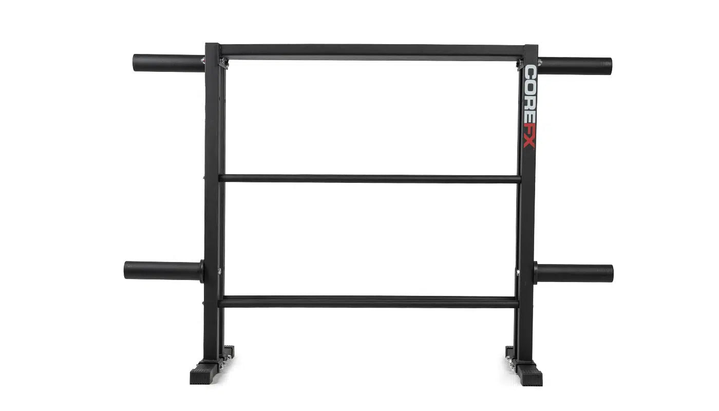 The Multi-Weight Storage Rack is constructed of solid durable steel with a scratch-resistant hammertone finish. It is designed with four rubber end caps to protect floors from damages. Weight capacity: 1000 lbs.