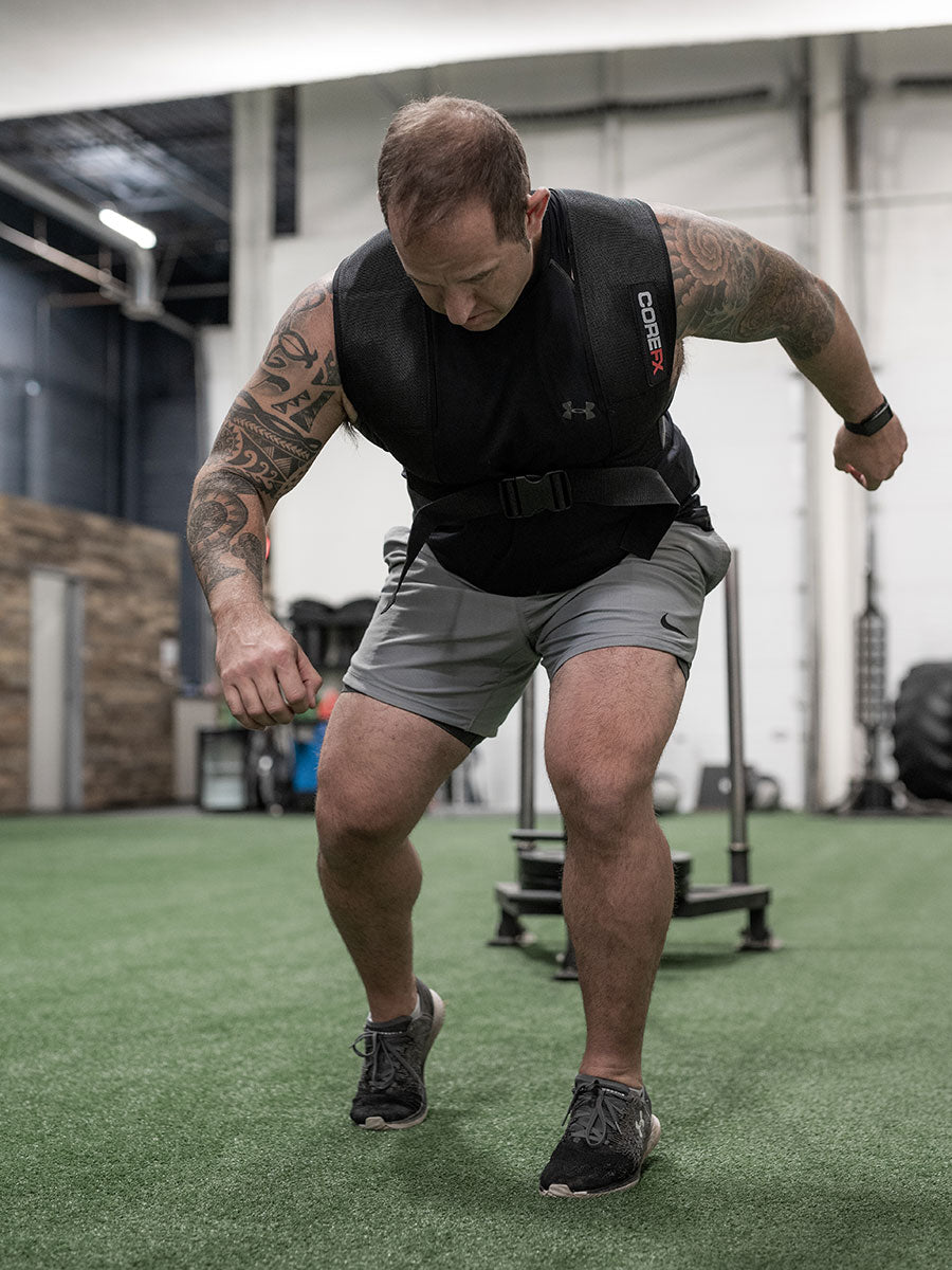 The COREFX Power System aligns perfectly with any sled system, and features an adjustable, one-size-fits-all design that is fully lined, with padded shoulder straps.