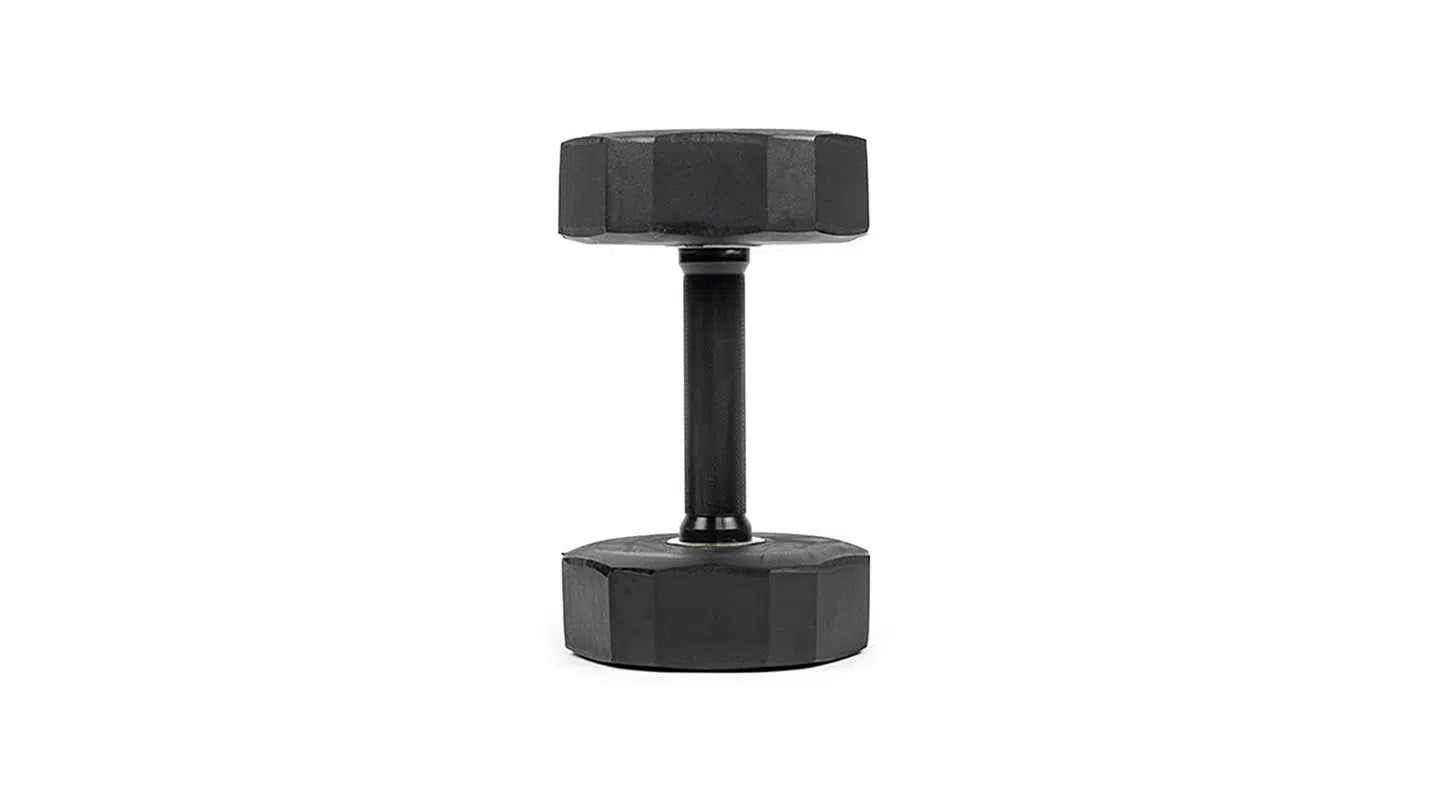 For strength in mind, look no furthre than this natural rubber dumbbell. Smoothly rolling for stability, it features a 12-sided natural rubber coating to help absorb impact and protect floors when used with workout equipment.