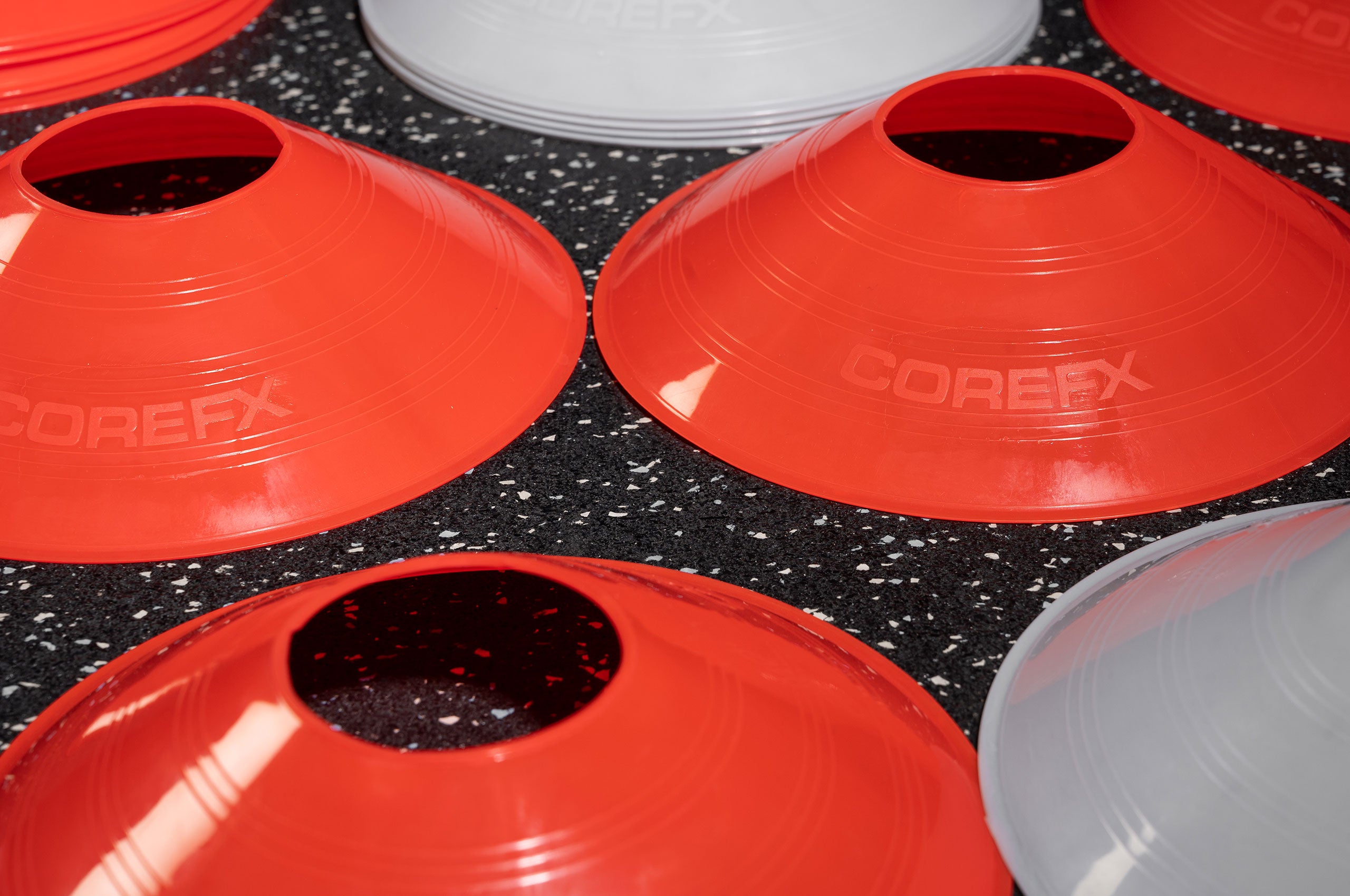 Place the training cones in various configurations and use the different colors to indicate direction changes. This set includes 10 red and 10 grey flexible cones to assist you with any desired training drill. Plastic carrier included to take the set with you wherever you go!